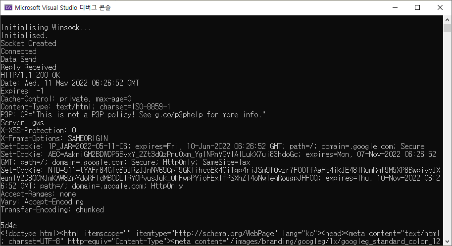 여기서 www.google.com은 웹 서버가 되고 작성한 클라이언트 프로그램은 웹 브라우저가 된다.