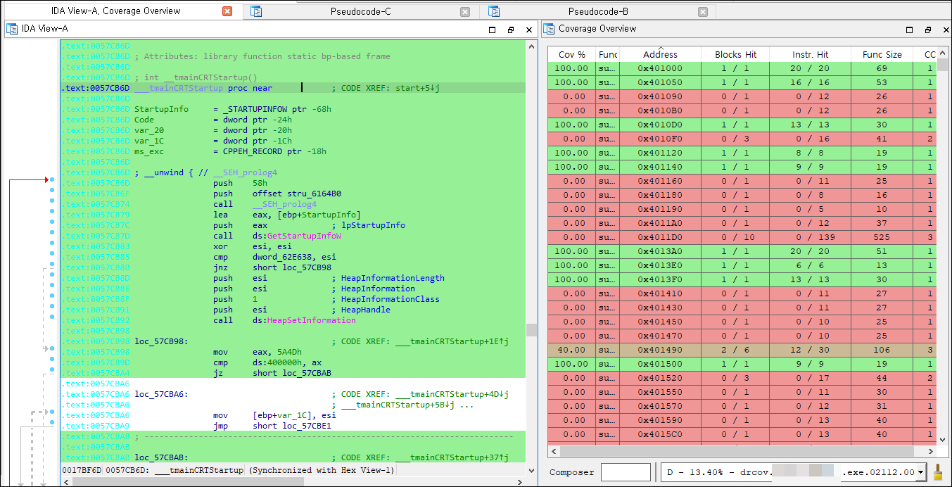 DynamoRIO와 같은 동적 분석 도구로 생성한 코드 커버리지를 IDA에서 볼 수 있게 시각화해주는 IDA Plugin이다.