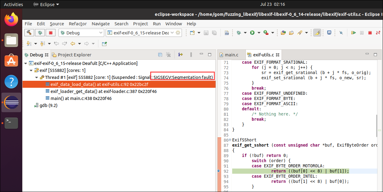 크래시를 분석한다. 앞서서는 gdb를 사용했지만 이번에는 eclipse를 이용하여 분석한다.