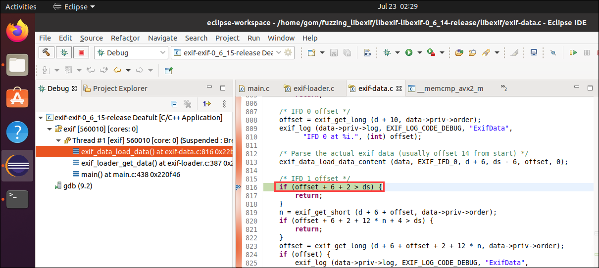 크래시를 분석한다. 앞서서는 gdb를 사용했지만 이번에는 eclipse를 이용하여 분석한다.