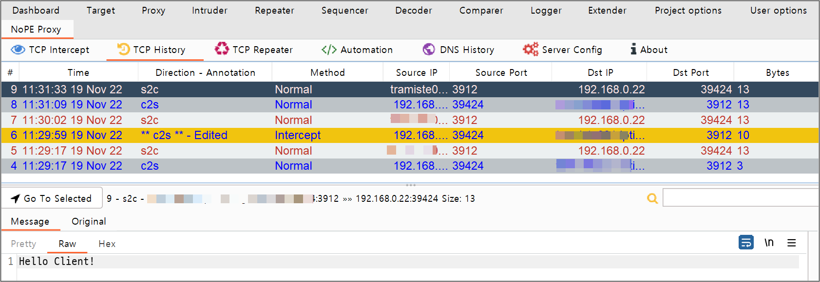 Burp 인증서 설치 및 안드로이드 패킷 스니핑에 이어 NoPE 플러그인을 이용하여 TCP 패킷을 조작하는 실습을 진행한다.