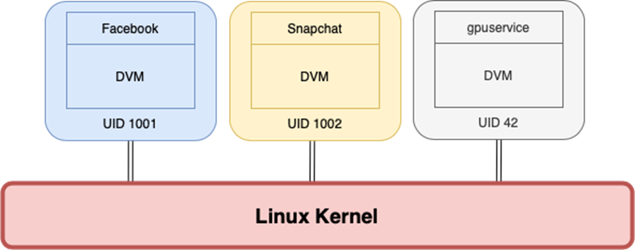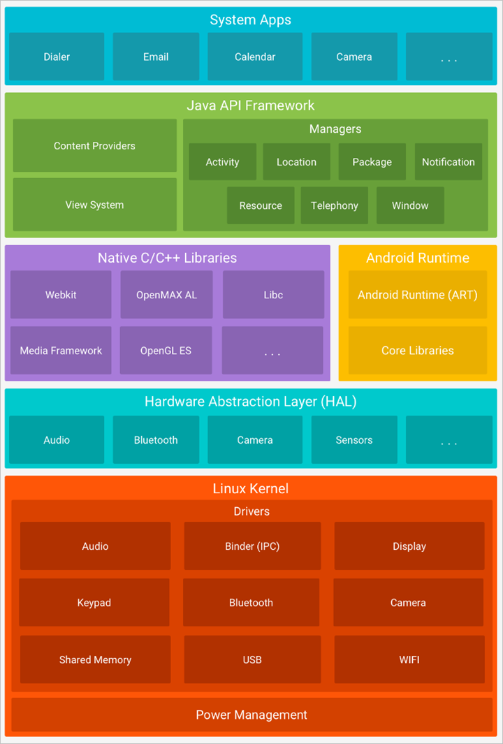 안드로이드의 경우 관리 주체에 따라 그림과 같이 세 단계로 나눠진다.