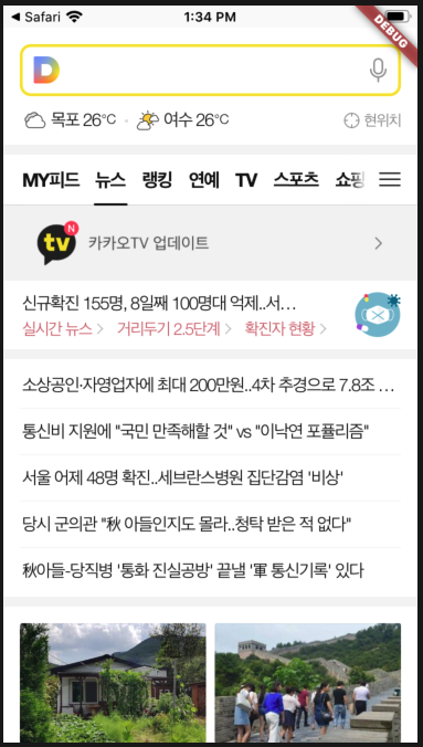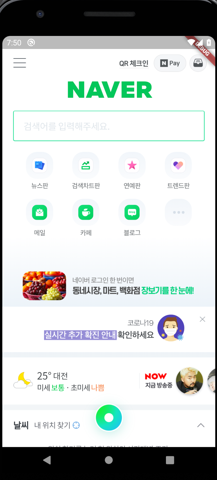 dependencies: webview_flutter: ^0.3.19+9 flutter: sdk: flutter # The following adds the Cupertino Icons font to your application. # Use with the CupertinoIcons class for iOS style icons. cupertino_icons: ^0.1.2빈 프로젝트에서 웹뷰 띄우기(default 경로 지정해서 자동으로 열리게 설정)