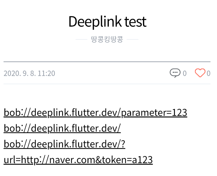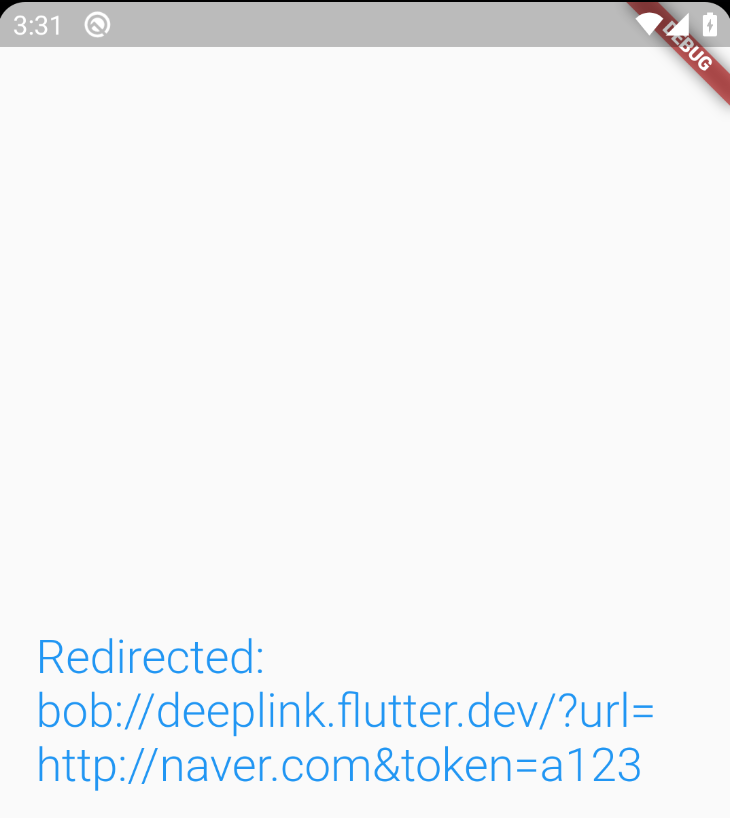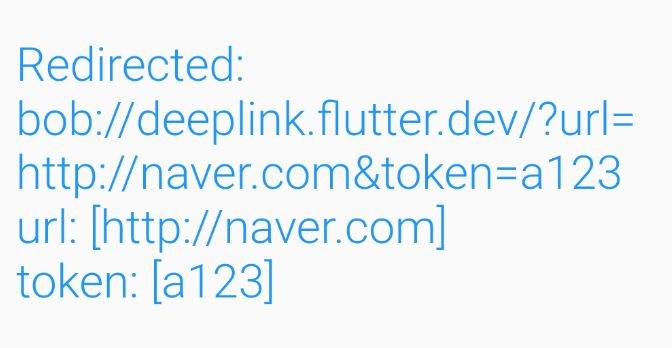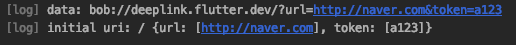 사용한 딥링크(bob://deeplink.flutter.dev/?url=http://naver.com&token=a123)