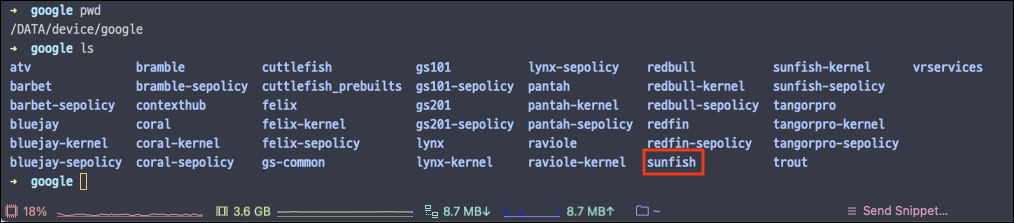 코드에서 지원하는 빌드 구성은 다운받은 상태이며, /device/google경로에서 확인할 수 있다.