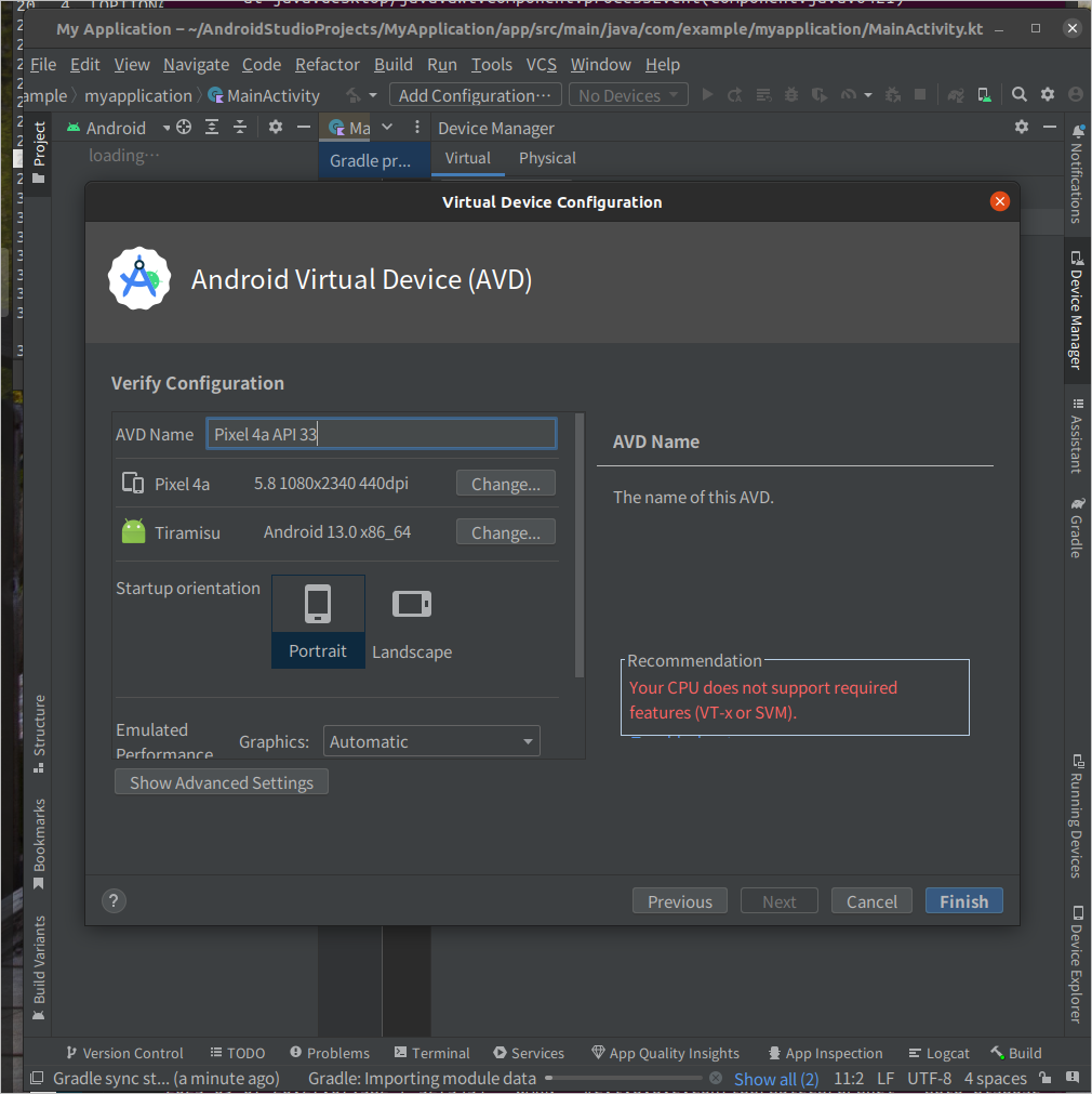 그런데 버추얼박스에서는 또 안드로이드 에뮬레이터를 실행할 수 없다고 한다.