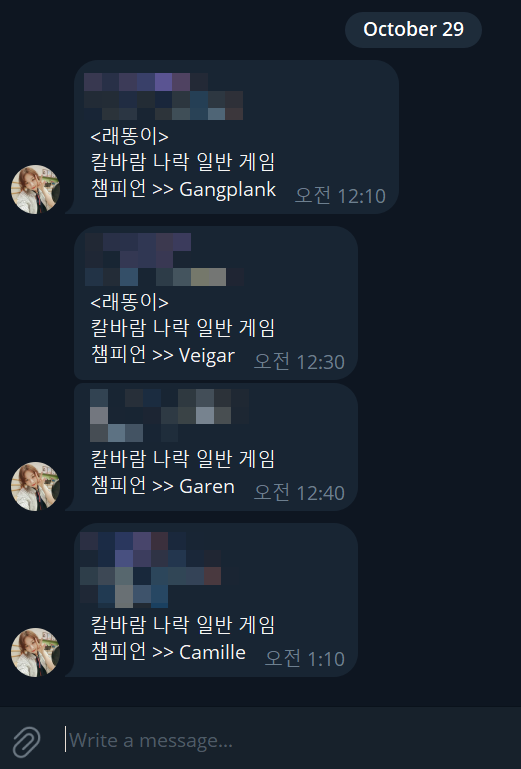 2020.11.26 - [Side Project/Telegram Chatbot] - [Telegram Bot] lol api 이용한 게임 알림 챗봇 제작기