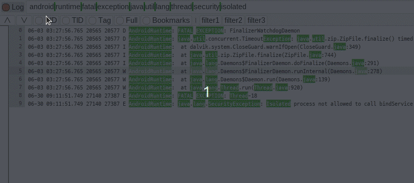 - Ctrl + Page Up : 로그의 가장 처음으로 이동