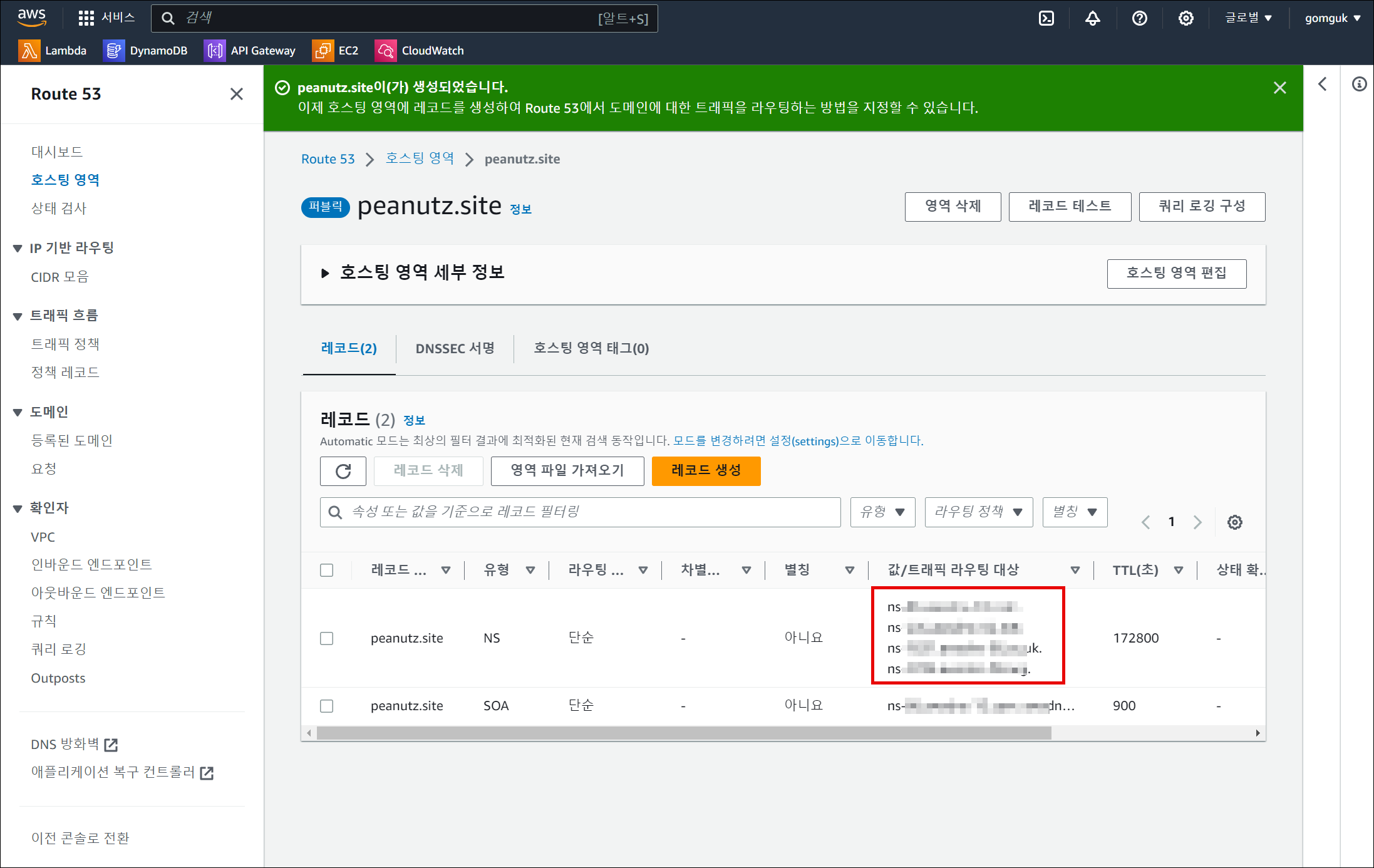 [AWS] Route 53 서비스에 가비아 도메인 연결하기