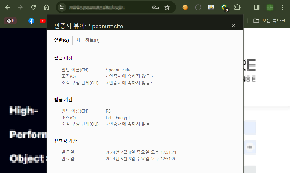 TXT 필드 값 인증이 완료되면 인증서가 발급된다.