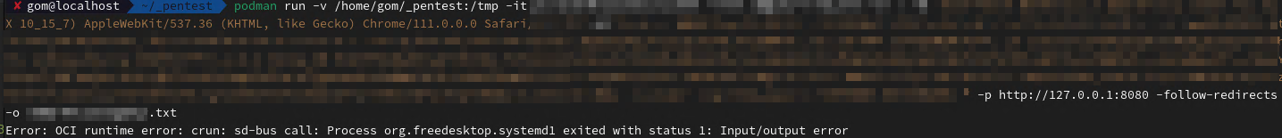 podman 컨테이너 구동 중 Error: OCI runtime error: crun: sd-bus call: Process org.freedesktop.systemdl exited with status 1: Input/output error 에러가 발생하여 해결하는 과정을 기록한다.