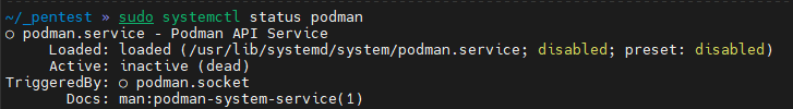 sudo systemctl systus podman으로 서비스 구동 여부를 확인한다.