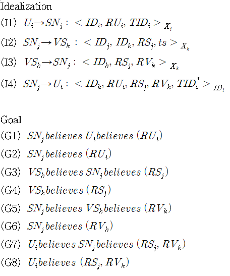 Ban Logic 검증에서 G3, G4를 이끌어내기 위해서 H1를 적용해야 한다. H1을 Assumption으로 바꾸기 위해서는 메시지의 freshness 확인이 필요하다. 따라서 Timestamp를 메시지에 포함시켜 전송하여 수신측에서 time window 범위를 확인함으로써 freshness 검증을 수행하였다. 개선된 프로토콜에 대한 반로직 검증은 아래와 같다.