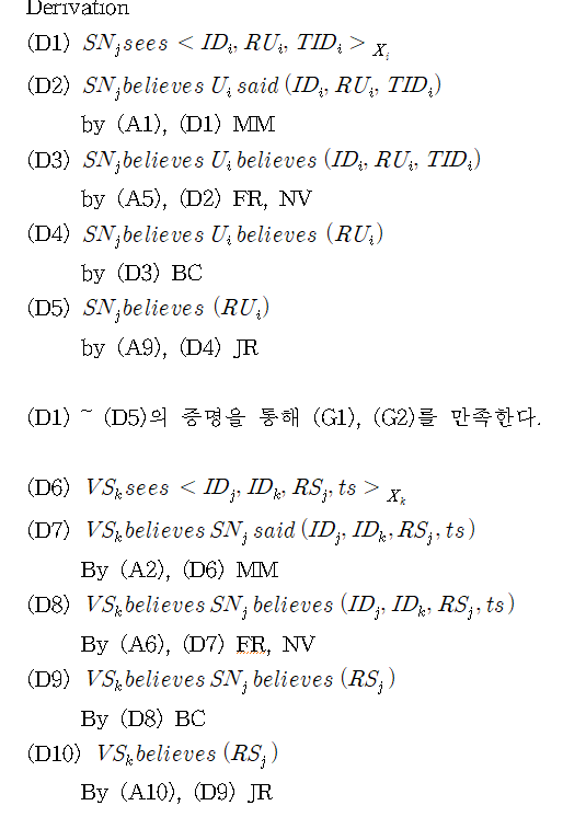 (D6) ~ (D10)을 통해 (G3), (G4)를 만족한다. 기존 프로토콜과는 다르게 ts(timestamp)를 추가함으로써 freshness를 검증할 수 있다. 그러므로 (G3), (G4)를 이끌어낼 수 있다.