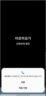 연락처 접근, 전화걸기, 문자(SMS) 접근 권한을 요청하며, 권한을 모두 허용한 경우 앱이 정상적으로 동작한다. 허용하지 않는 경우 경고창을 띄우며 앱을 종료한다.