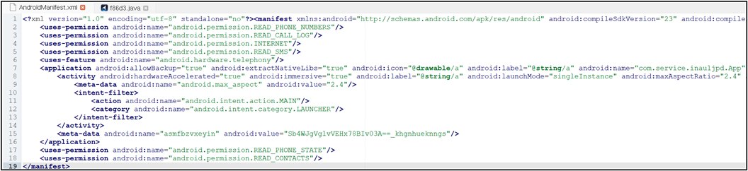 액티비티는 안드로이드 앱의 화면 구성 단위로, 사용자와 상호작용을 위한 인터페이스를 제공한다. 액티비티 분석은 앱의 기능적 구성요소와 사용자 인터페이스 설계를 파악할 수 있다. 예를 들어, 앱 내의 로그인 화면, 메인 메뉴, 설정 화면 등은 각각 별도의 액티비티로 구현됨. 악성 앱의 경우, 액티비티를 통해 사용자를 속이기 위한 화면을 제공하고 숨겨진 기능을 통해 악성 행위를 수행할 수 있다. 대상 앱에 선언된 액티비티는 다음과 같다.