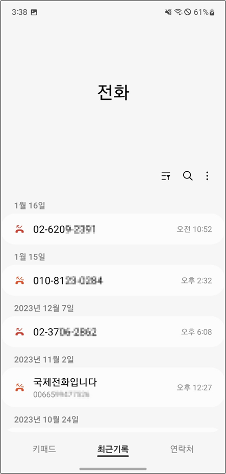 단말에 저장된 통화기록과 비교했을 때 같은 정보인 것을 확인할 수 있다