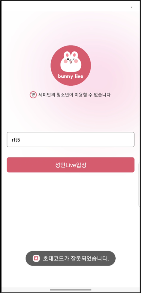 분석 대상 앱은 Bunny 앱이다. 분석을 수행한 앱중 가장 쉽게 초대 코드를 우회할 수 있었다.