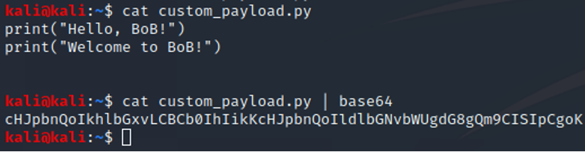 [Kali] Print 구문을 추가한 후 페이로드의 끝부분에 추가한다.