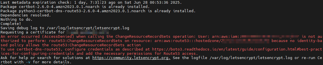 sudo yum install -y certbot python3-certbot-dns-route53