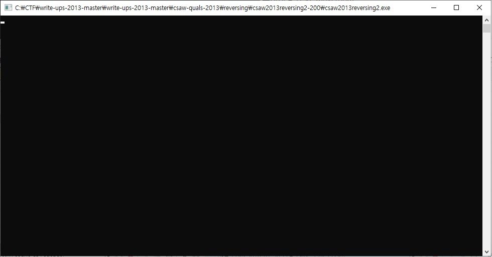 문제파일인 csaw2013reversing2.exe 을 직접 실행시키면 에러가 발생하거나 아무것도 출력되지 않고 창이 종료됩니다.