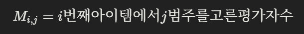 아이템 N개, 범주 k개, 평가자 n 명각 아이템마다 "범주별로 몇 명이 그 범주를 골랐는지"를 세어 표로 만든다.