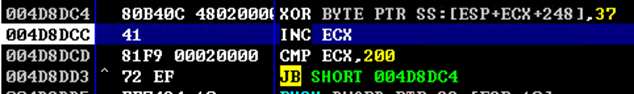 CMP ECX, 200 ; XOR을 수행한 영역이 0x200보다 큰지 검사
