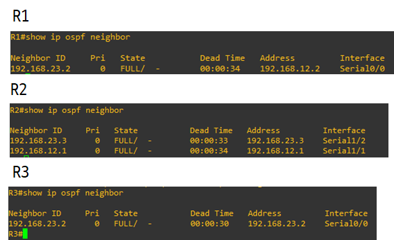 다음 명령을 통해 OSPF 이웃 라우터에 어떤 것이 있는지 확인할 수 있다.