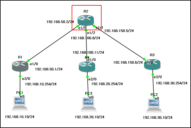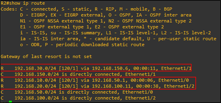 R2 의 라우팅 테이블은 아래와 같다.