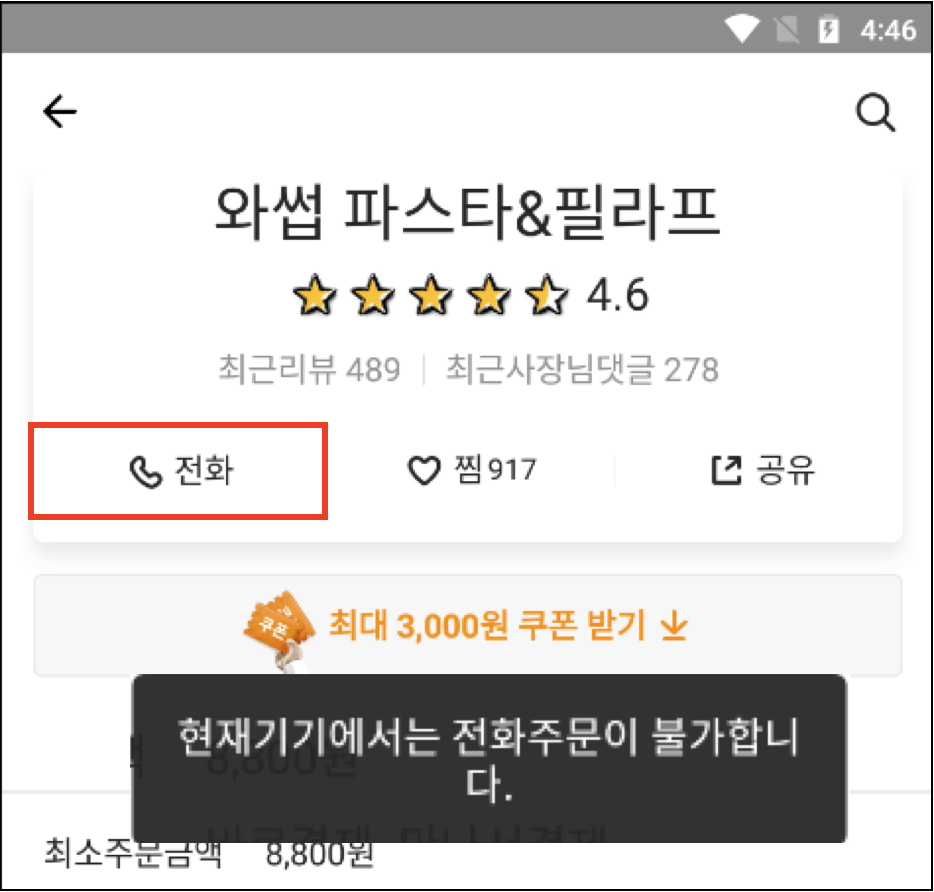 앱 내에서 전화번호 클릭 시 다이얼 페이지 연결과, 전화 걸기 동작을 수행하는 기능이 있다. 안드로이드 내부 스키마로 "tel://00000"을 통해 Intent를 전달하여 호출한다.