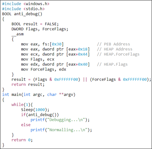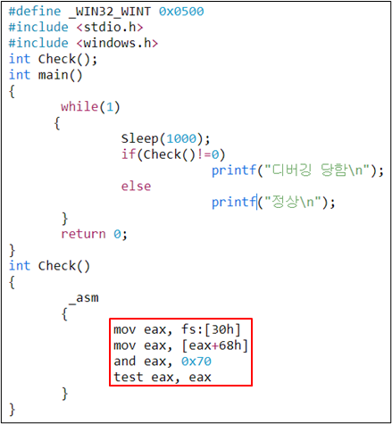 디버깅 중일때 PEB.NtGlobalFlag(+0x68) 값은 0x70으로 세팅