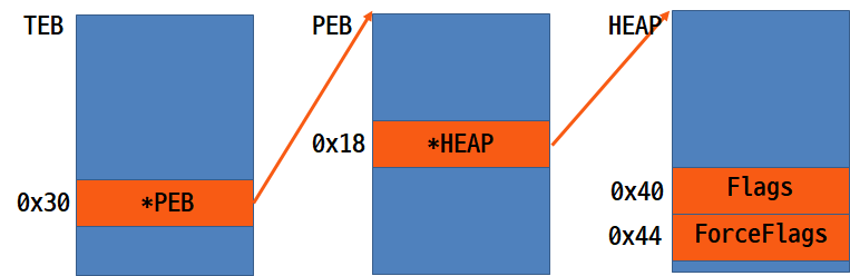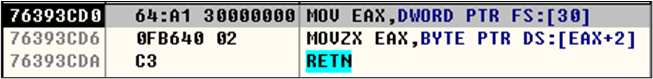 PEB 주소를 구하기 위해 TEB(ThreadEnvironment Block)에 +0x30 옵셋을 참고한다.
