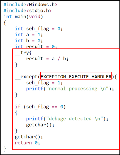 - EXCEPTION_EXECUTE_HANDLER : 예외 처리 루틴 수행