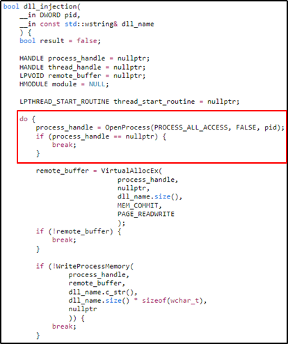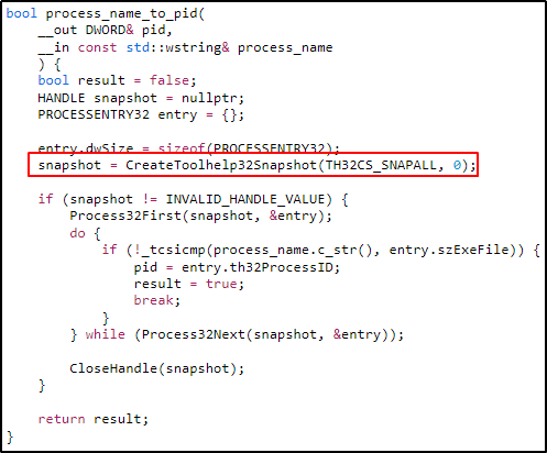 tcsicmp 함수 이용해서 프로세스 이름을 통해 PID 찾아서 Injection 도 가능하다.