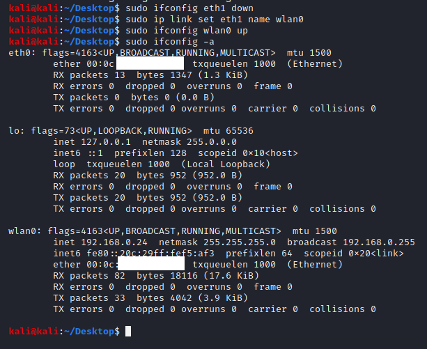 새로운 어댑터를 연결했을 때 eth# 형태로 인식이 될 수도 있다. 무선 어댑터인지 구별하기 위해서 인터페이스 이름을 변경해준다.(eth1 -> wlan0)