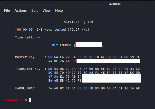 deauth 패킷을 전송해서 재연결을 수행할 때 airdump-ng 셸에 handshake 패킷이 캡쳐됨을 확인할 수 있다.