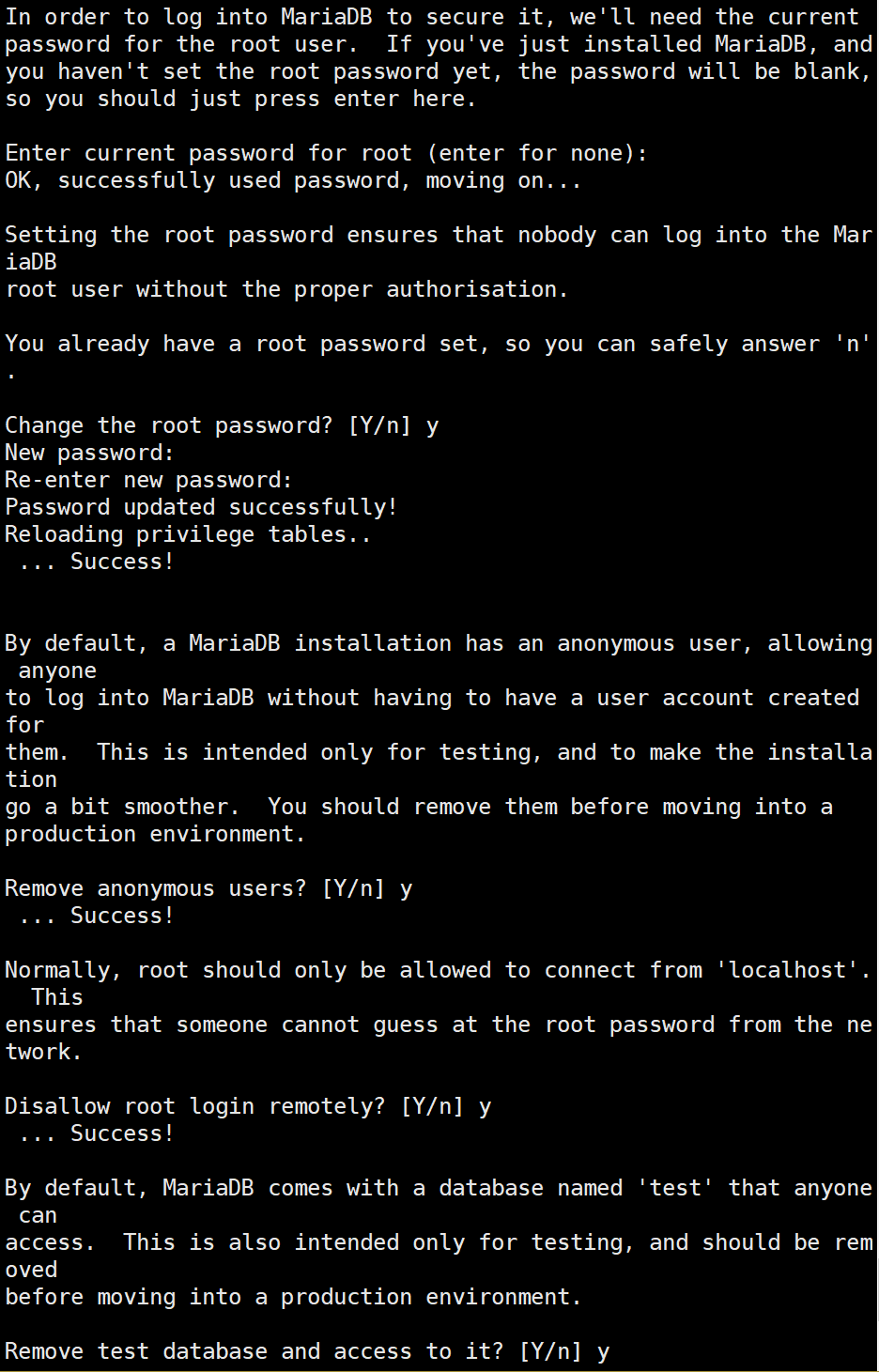/usr/bin/mysql_secure_installation을 통해 초기화한다.