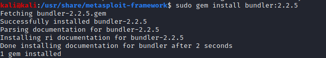 `cd /usr/share/metasploit-framework/`3. 버전에 맞는 bundler를 설치해 준다.(발생한 에러메시지에서 확인 가능)