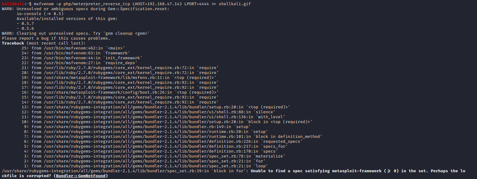 리버스 쉘연결을 위해 msfvenom(메타스플로잇)을 사용하던 도중 에러가 발생한다.