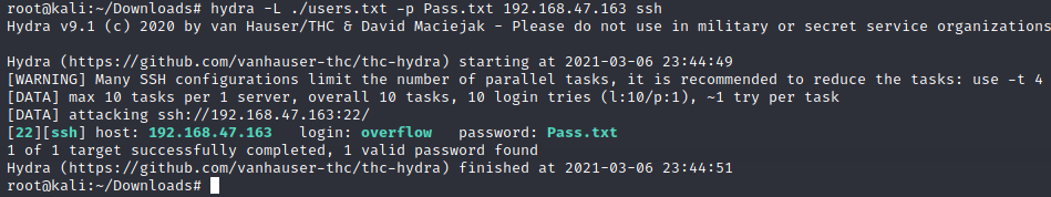 ssh overflow@192.168.47.163