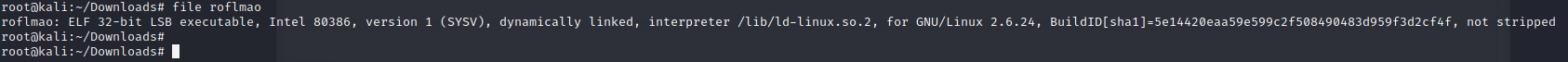 roflmao 파일이 존재한다. 다운 받고 file 명령어로 파일을 분석한다. ELF 32-bit 실행 파일임을 확인할 수 있다.