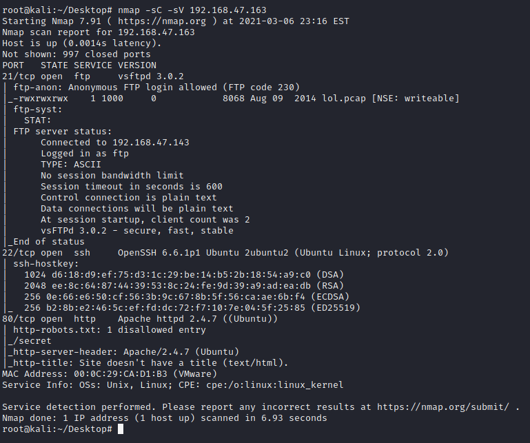nmap -sC -sV 192.168.47.163