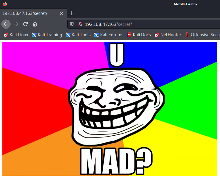 스캔 결과로 Apache(2.4.7) 버전, robots.txt 존재 및 내용에 /secret 경로가 존재함을 확인한다.