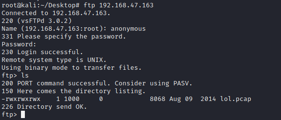스캔 결과에 FTP 포트가 열려 있었으므로 접속을 시도한다. nmap 결과 익명 연결이 허용되어 있으므로
