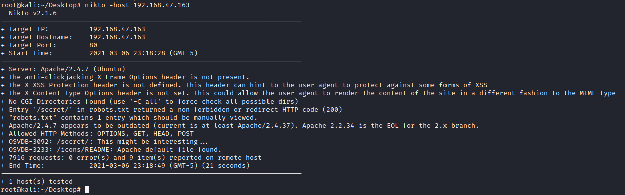 nikto --host 192.168.47.163