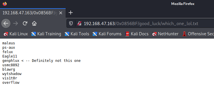 하나는 계정명, 하나는 패스워드로 추측하였고 각각을 파일로 다운받아서 hydra로 패스워드 크랙을 시도하였다.