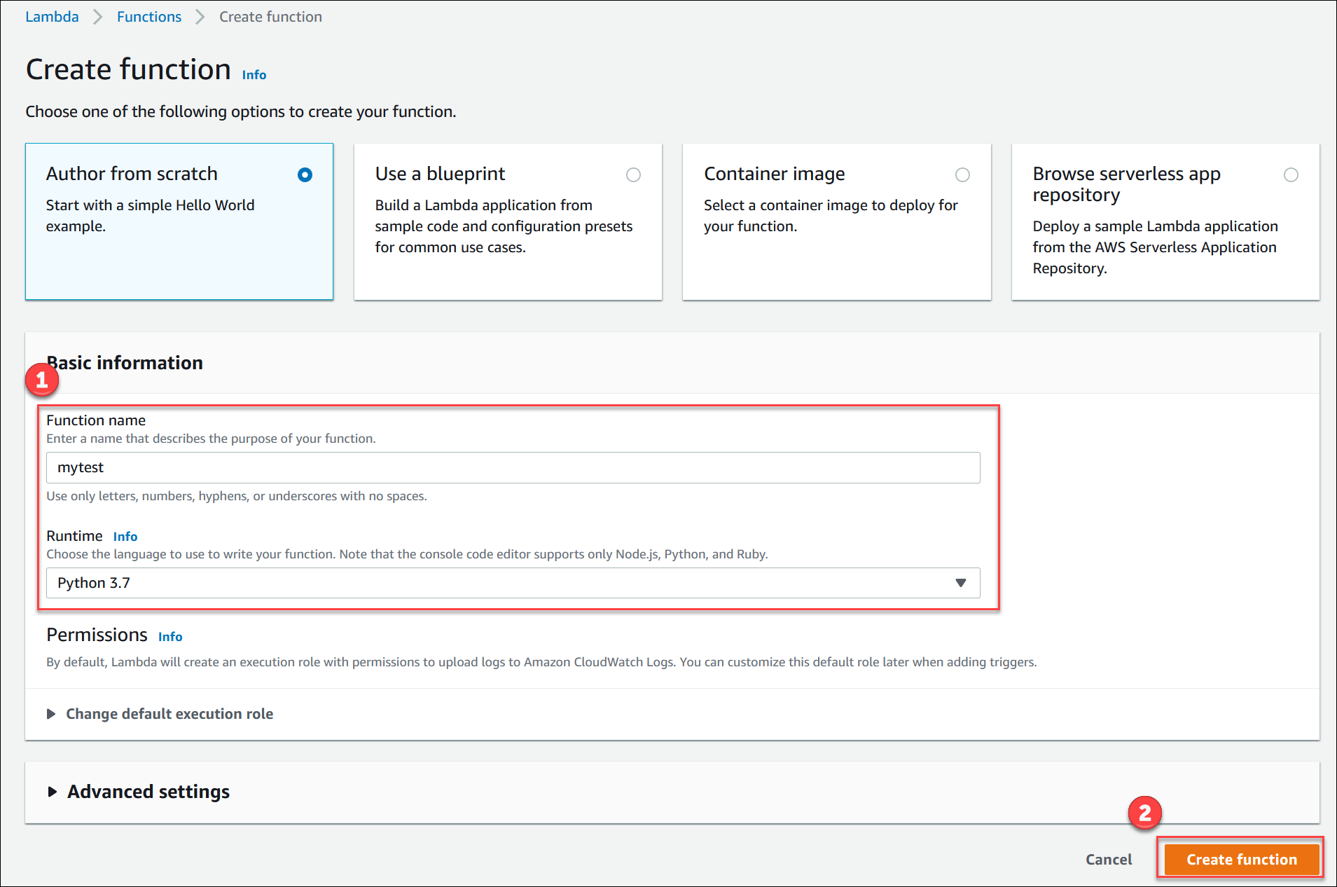 Lambda 함수 생성