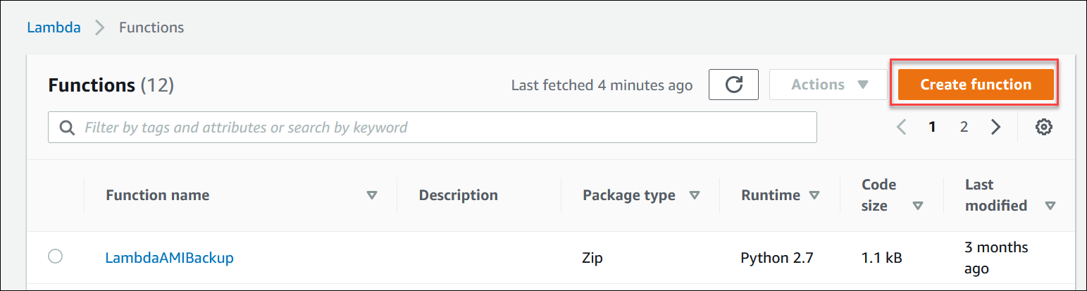 먼저 람다 함수를 생성합니다.