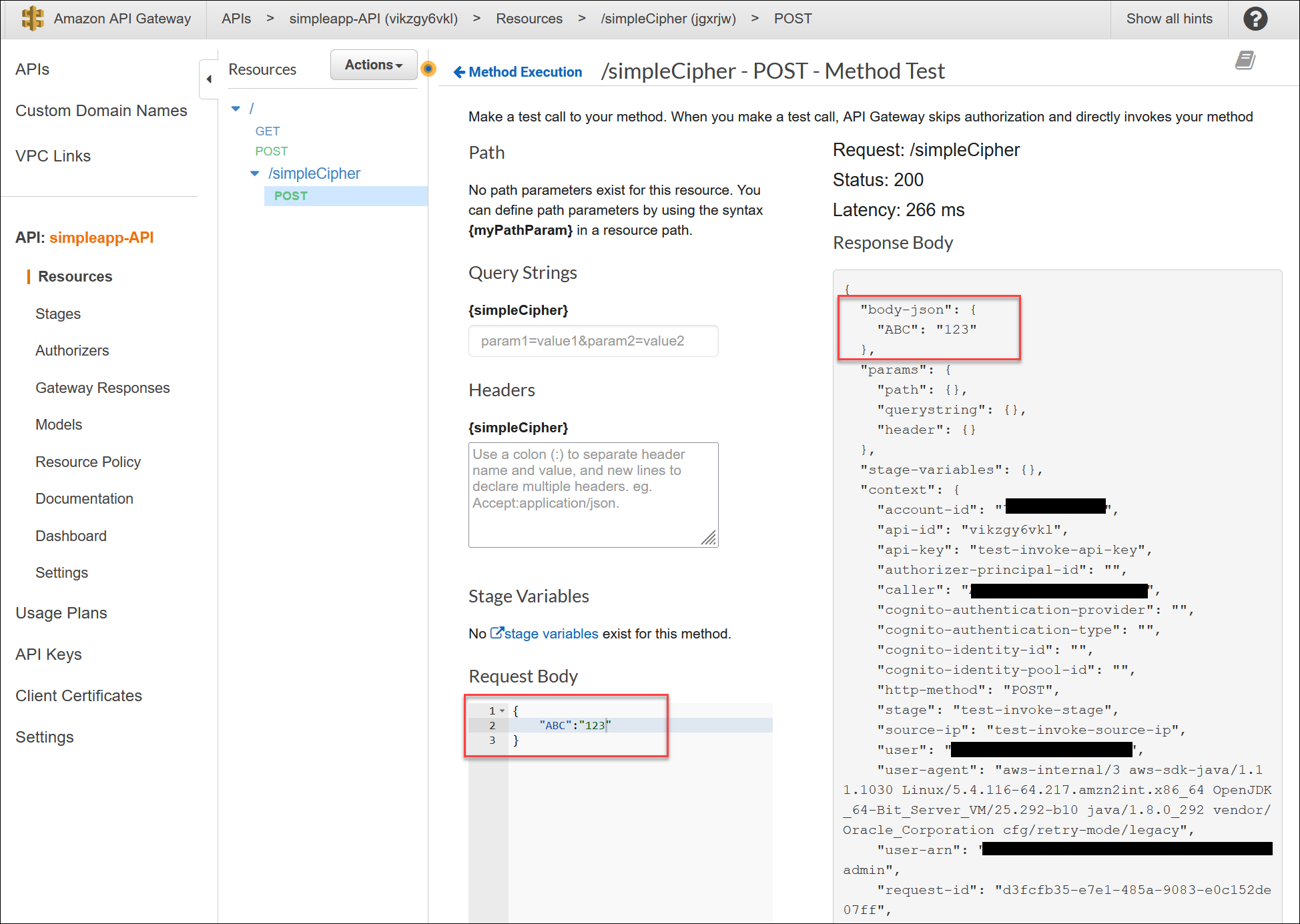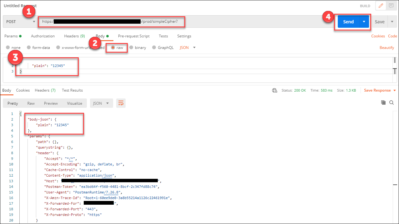 전송한 json 요청이 응답 body의 "body-json"에 포함되어 전송되는 것을 확인할 수 있습니다.