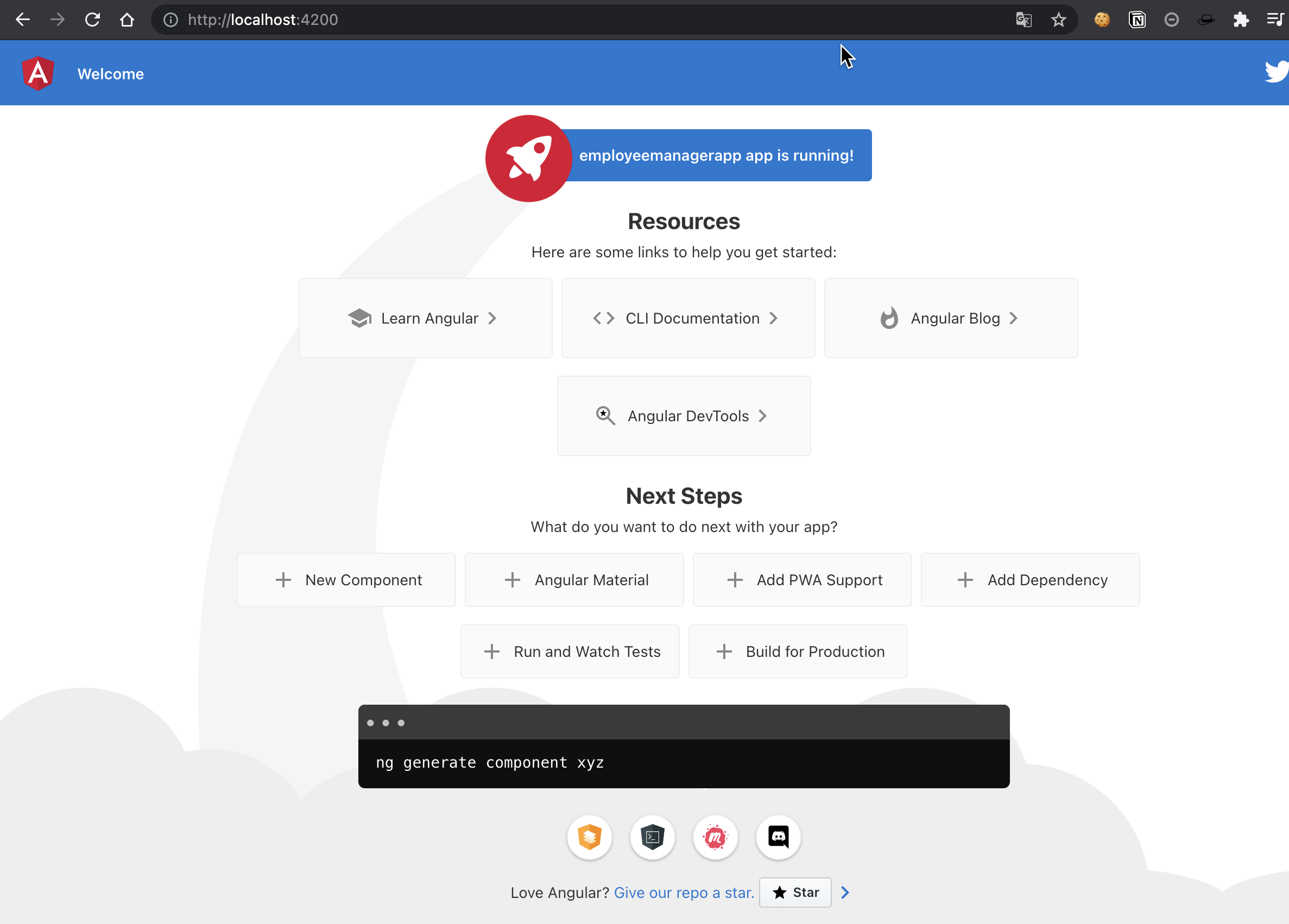 서버 시작 후 localhost:4200 주소로 접근하면 확인할 수 있다.